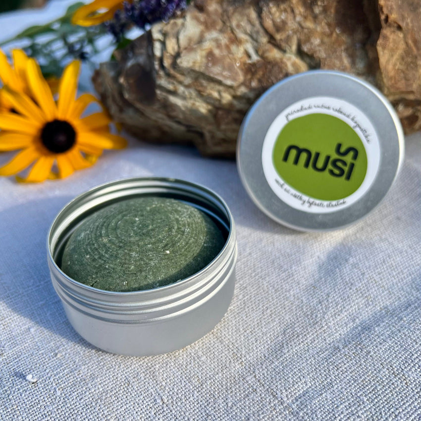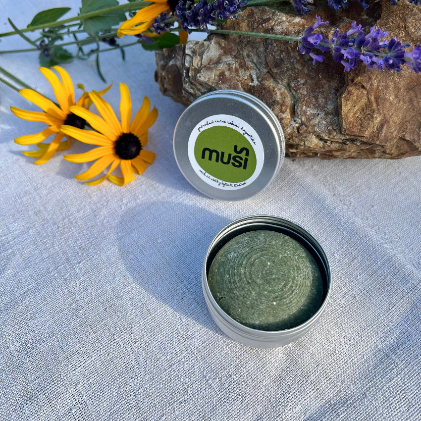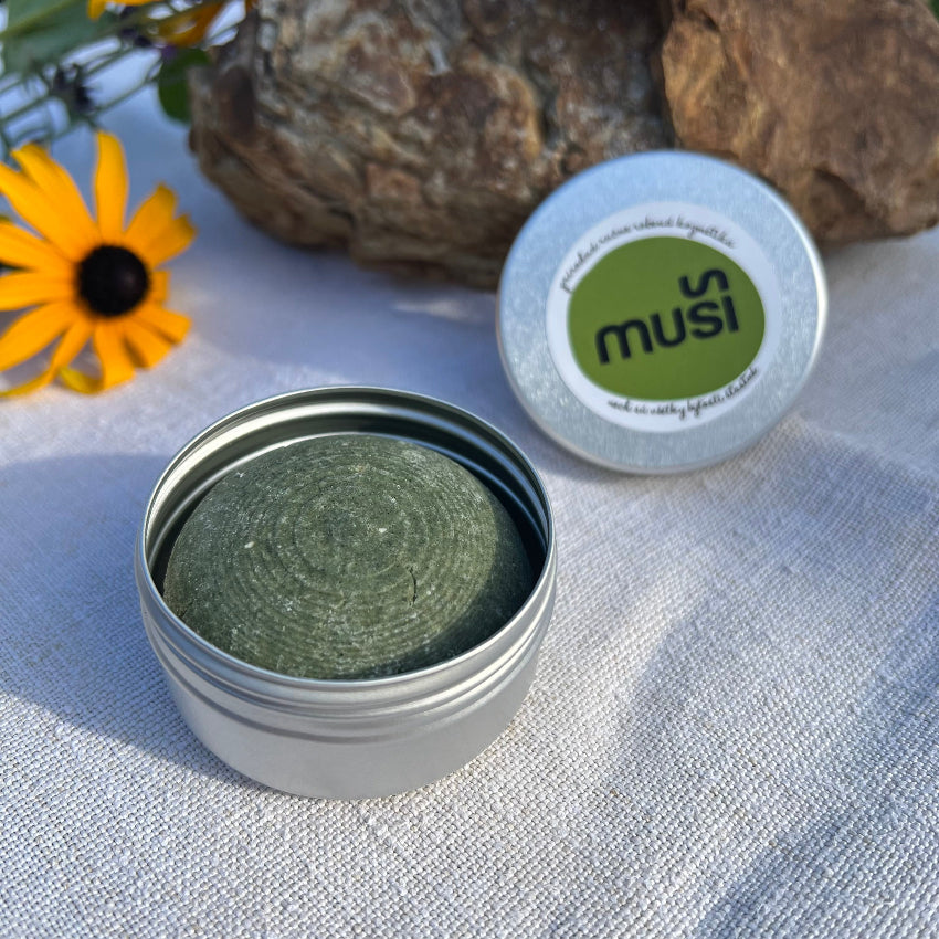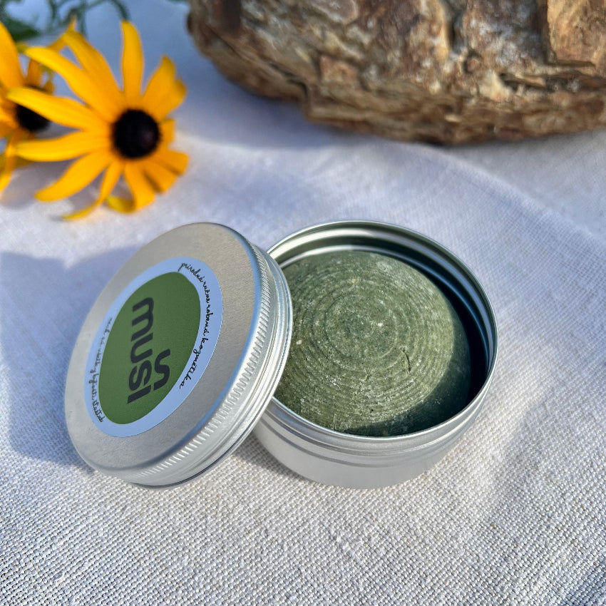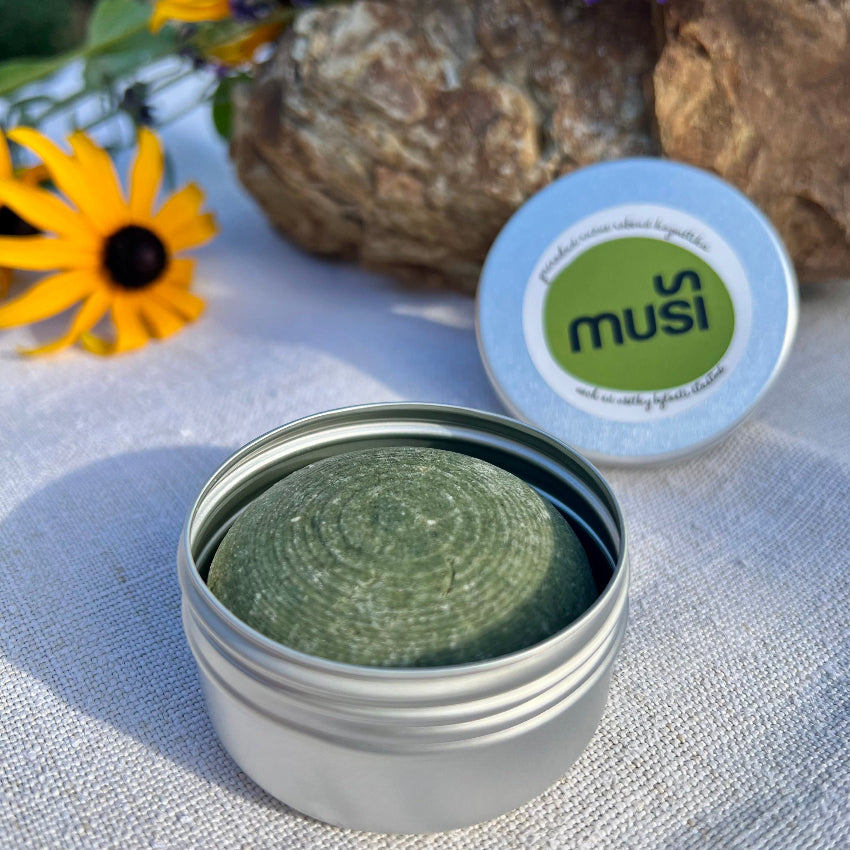 Praktická a ekologická hliníková dóza, ideálna na uskladnenie a prenášanie tuhého šampónu.